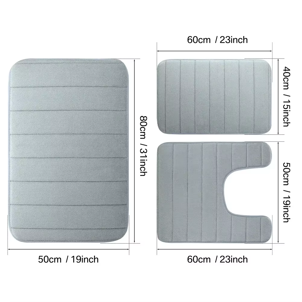 3Pc Sets Bath Mats Non Slip Memory Foam Bathroom Soft Rugs Water Absorption Dry