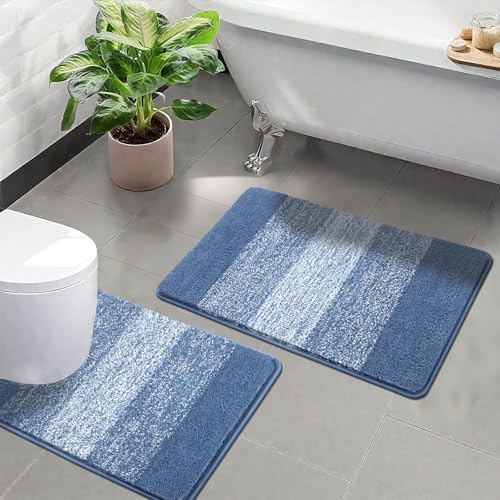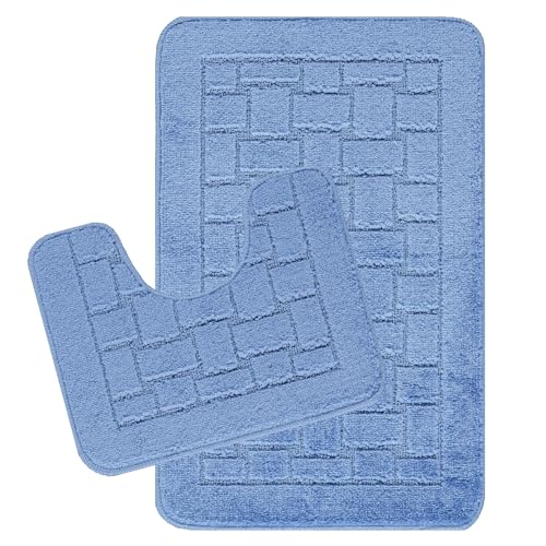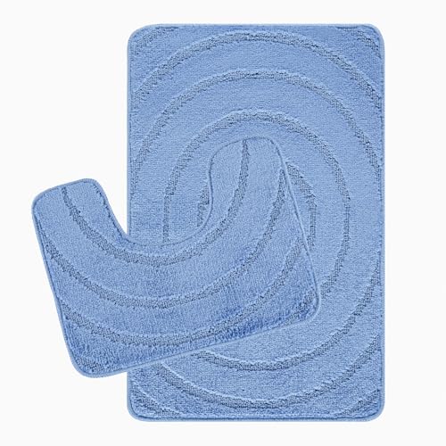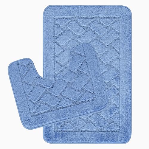 Enyhom Soft Bathroom Mat Sets 2 Piece Water Absorbent Bath Mats and Toilet Mat Non Slip Machine Washable Bath and Pedestal Mat Sets, Blue