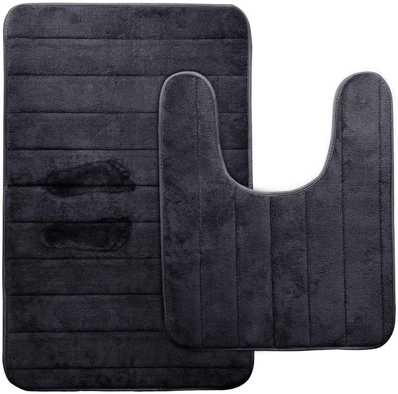 BIKHYY Memory Foam Bathroom Mats 2 Piece Sets Non Slip Bathtub and Toilet Pedes
