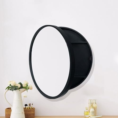Bathroom Mirror Cabinet, Round Bathroom Wall Cabinet Reliable Quality Safe HD Efficient Storage, Solid Wood Bathroom Mirror Cabinets Utilize Wall Space with Storage Function for Shower Room TOILET