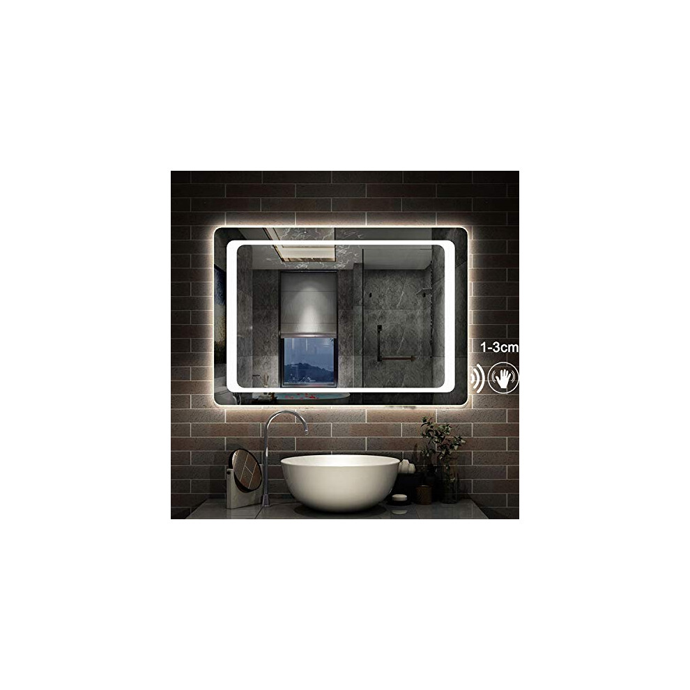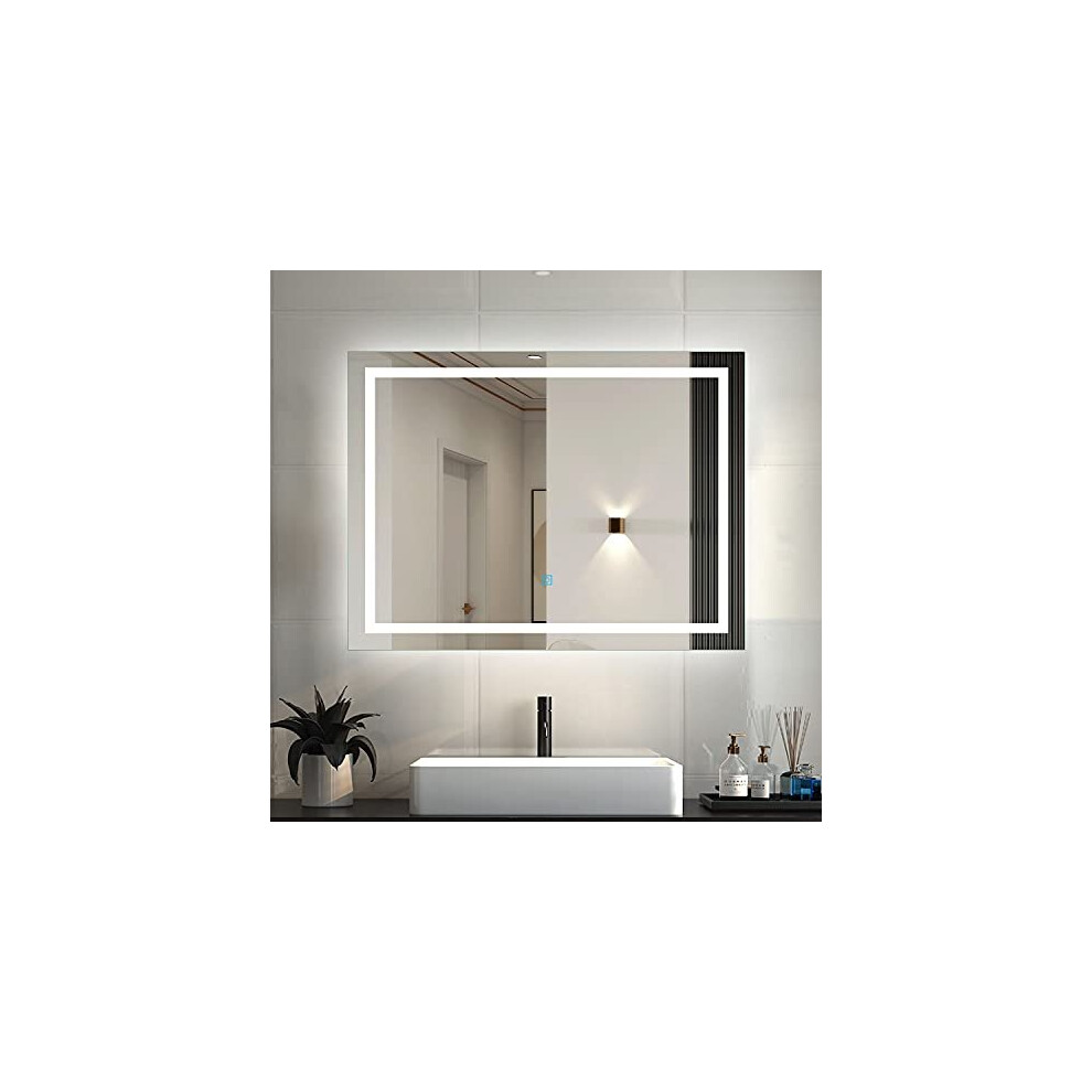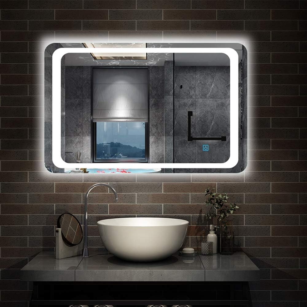 LED Bathroom Mirror with LED Lights, Dimmable Touch Switch Defogging