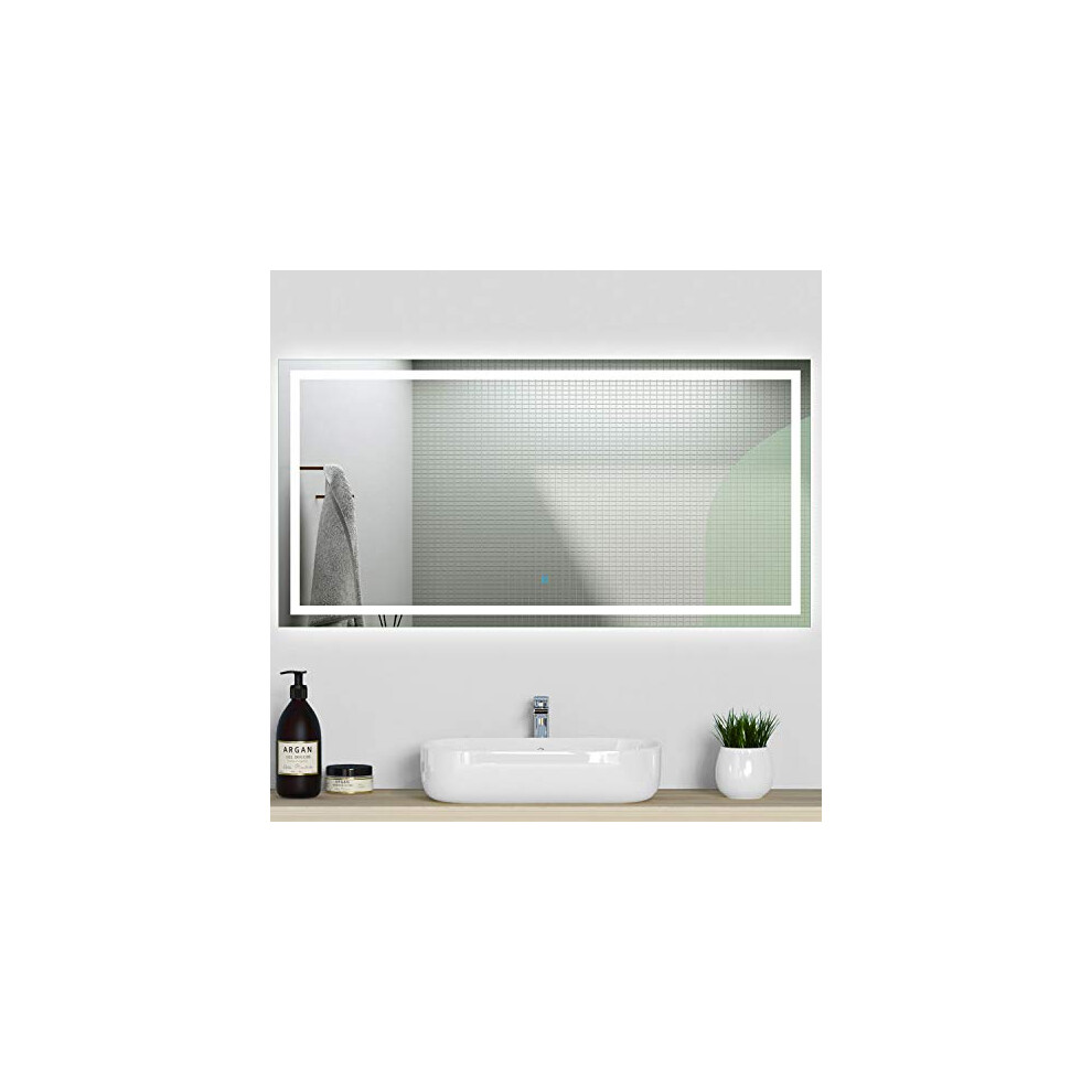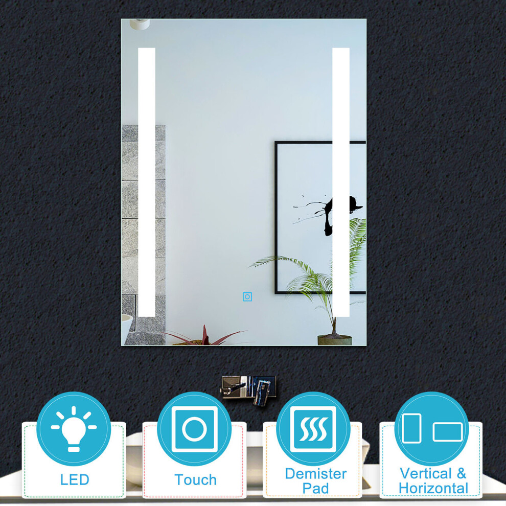 Acezanble Bathroom Wall Mirrors with LED Lights,Demister Pad,Touch Sensor Switch,IP44,Vertical or Horizontal (Touch+LED+Demister, 500x700)