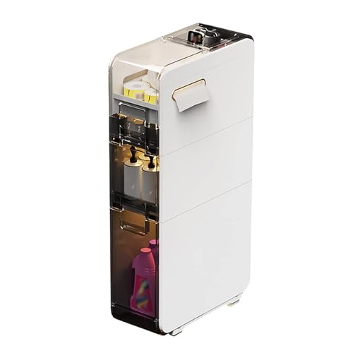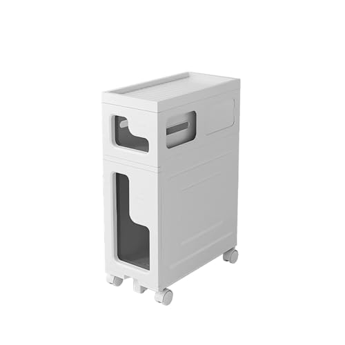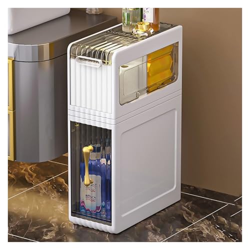 Pilipane Bathroom Narrow Storage Cabinet Acrylic Slim Mobile Toilet Side Organizer with Drawer for Laundry Living Room Small Space Plastic Transparent Multi Tier (2 Tier)