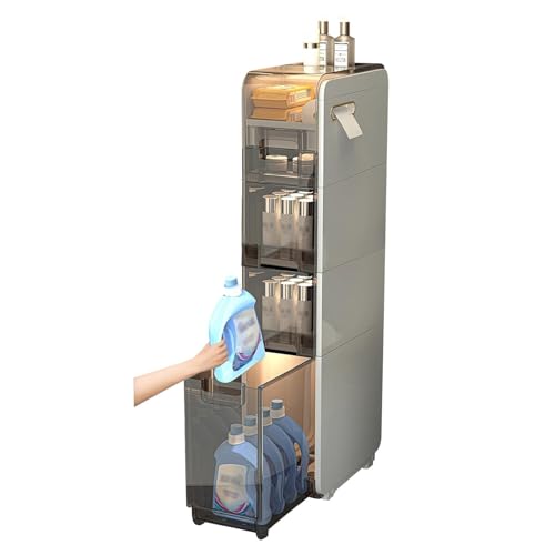 Failjierue Narrow Bathroom Storage Cabinet - Freestanding Organizer with Clear Drawers & Easy-Glide Casters Wheels for Towels, Cosmetics Bath Kitchen Accessories(4-Tiers)