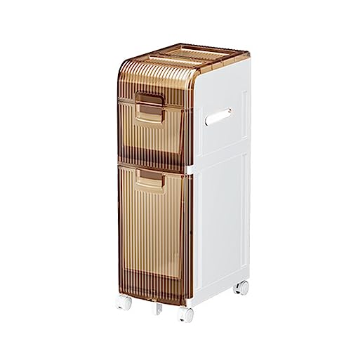 LMMIAOZ stackable storage drawers Narrow Bathroom Floor Storage Cabinet with Multi-Layer Drawers and 4 Universal Wheels, Tall Slim Bathroom Storage Unit Free Standing Storage Cabinet for Small Space
