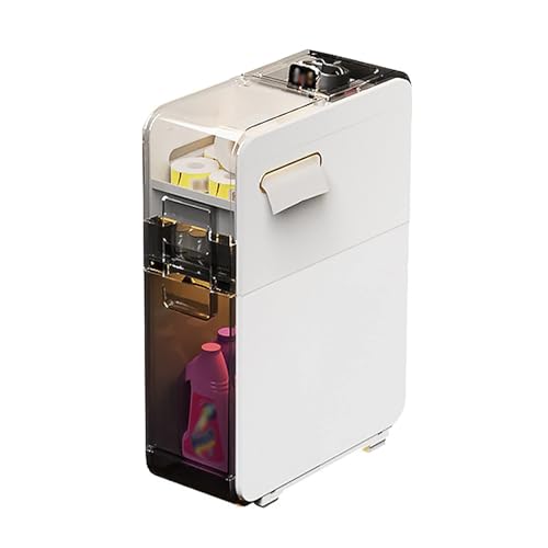 Kamulouk Small Narrow Bathroom Storage Cabinet with Paper Dispenser, Trash Can & Shelves - Over The Toilet & Corner Fitting - White