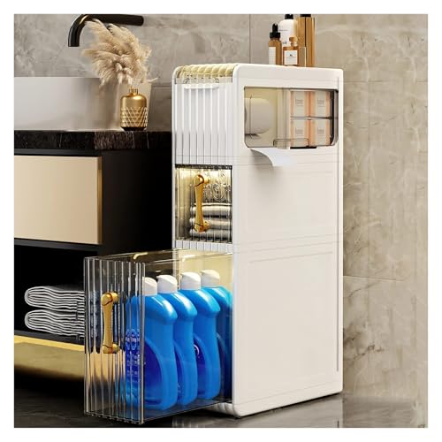 SANON 4- Tier Slim Bathroom Storage Cabinet, Bathroom Floor Waterproof Narrow Storage Cabinet With Drawers Plastic Freestanding Toilet Paper Holder, for Small Spaces, Kitchen, Dormitory, Apartment