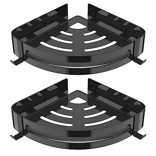 Shower Corner Shelf, Bathroom Shelves, Rustproof Thickened Stainless steel, Wall Mounted No Drilling Triangle Shower Caddy Basket, Bathroom Shelf Organiser for Bathroom Kitchen (2 Packs, Black)