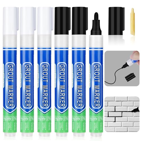 Flintronic 6PCS White & Black Grout Pen - Tile Paint Marker and Wall Repair for Bathroom Kitchen Floor and Wall Lines - Reviver and Sealer