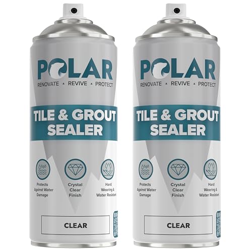 Polar Tile & Grout Sealer Clear Spray - 2 x 400ml - Instantly Waterproofs and Protects Floor Tile Grout on Bathroom, Shower & Kitchen Tiles, Stone Masonry - For Interior & Exterior Surfaces