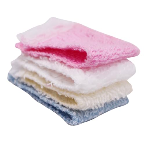 VICASKY 4pcs Miniature Dollhouse Bathroom Hand Towels Set, Small Doll Bath Towel Props in White, Beige, Pink, Blue for Dollhouse Washing and Decor