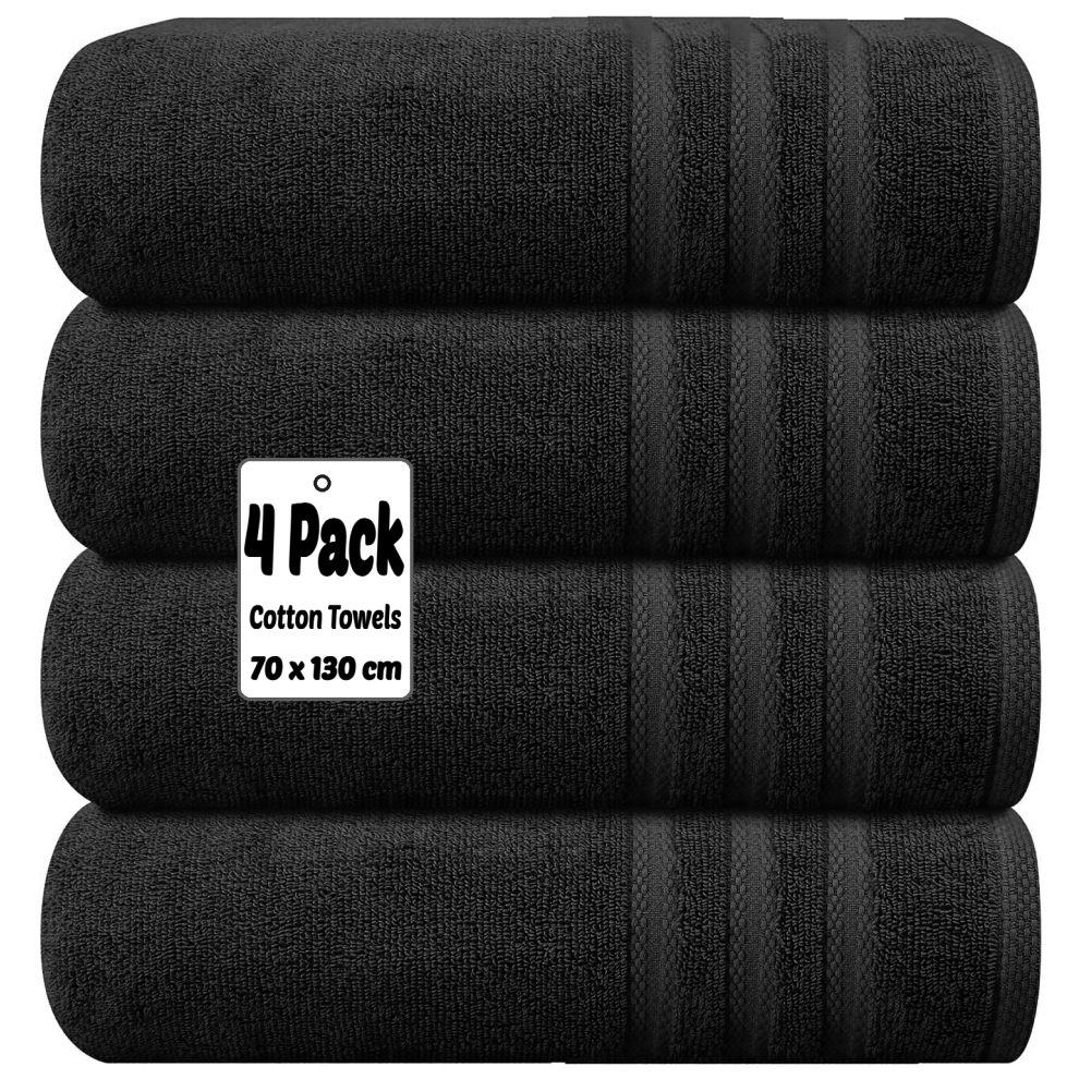 (Black) 4 X Luxury Bath Towels 100% Egyptian Cotton Large Size Big Bathroom Towels Set