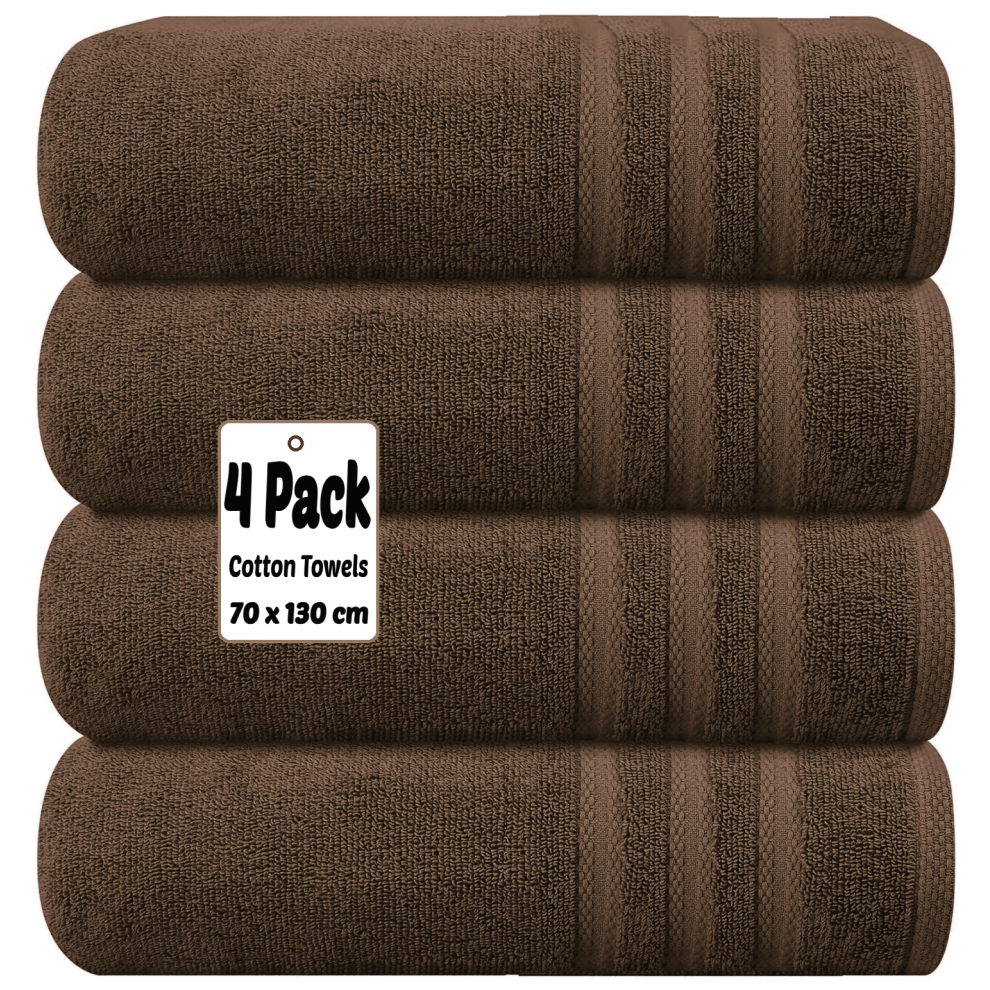 (Chocolate) 4 X Luxury Bath Towels 100% Egyptian Cotton Large Size Big Bathroom Towels Set
