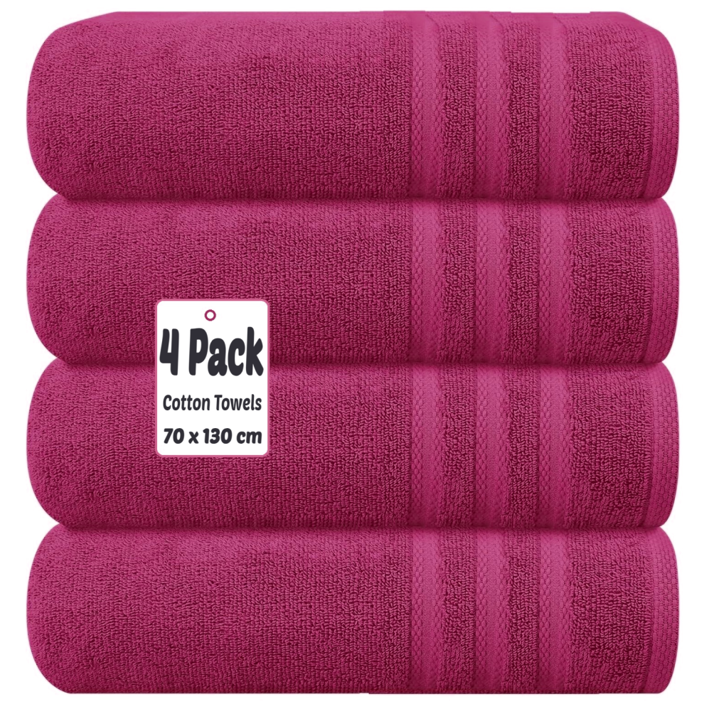 (Pink) 4 X Luxury Bath Towels 100% Egyptian Cotton Large Size Big Bathroom Towels Set
