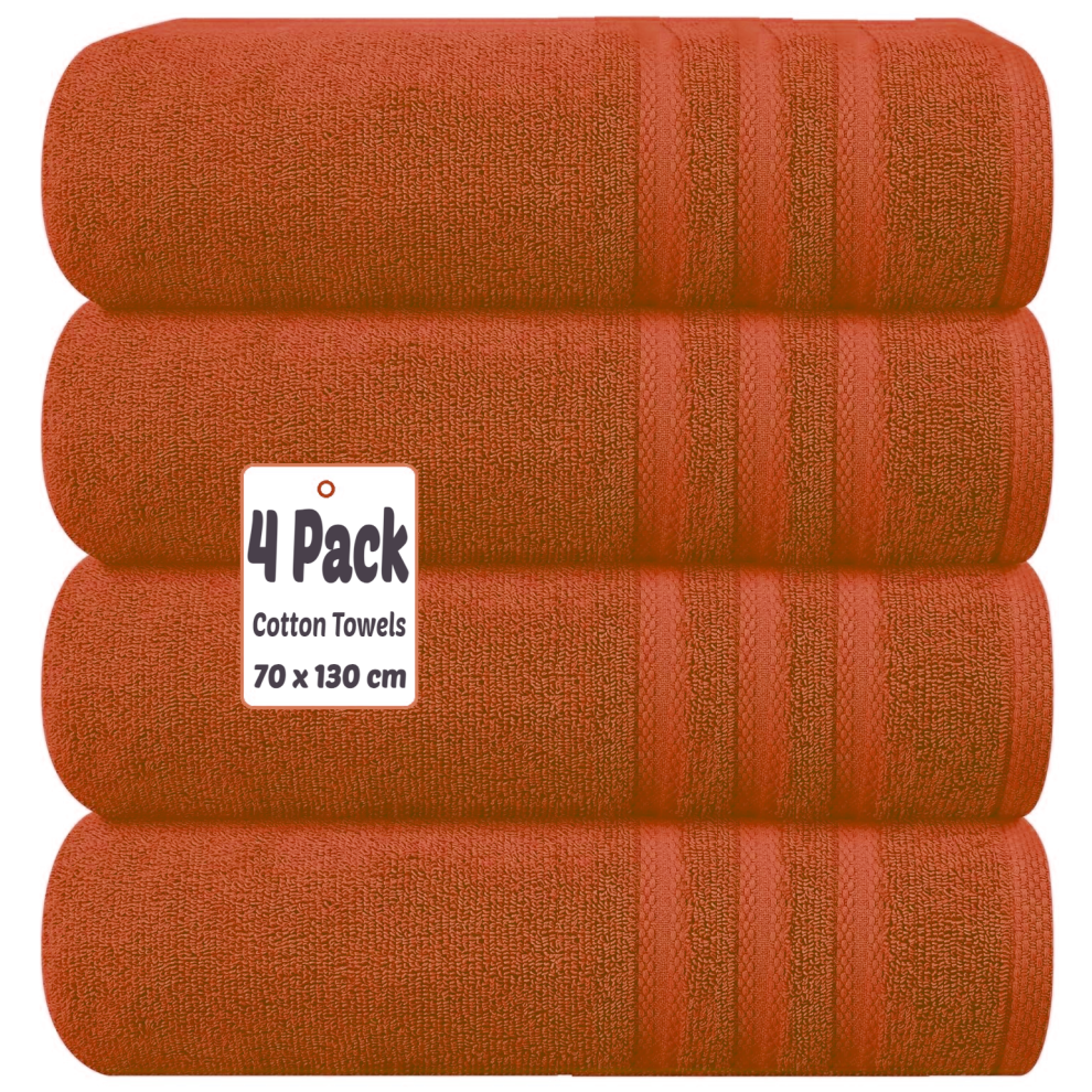 (Orange) 4 X Luxury Bath Towels 100% Egyptian Cotton Large Size Big Bathroom Towels Set