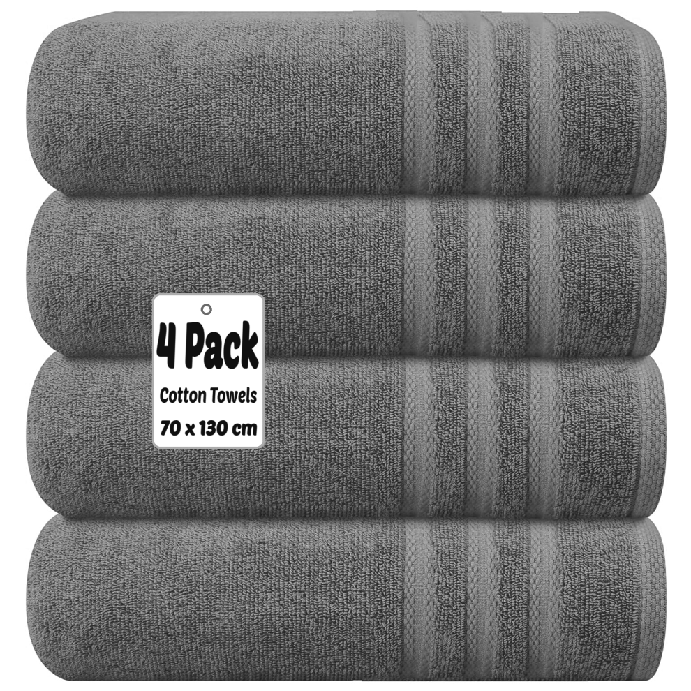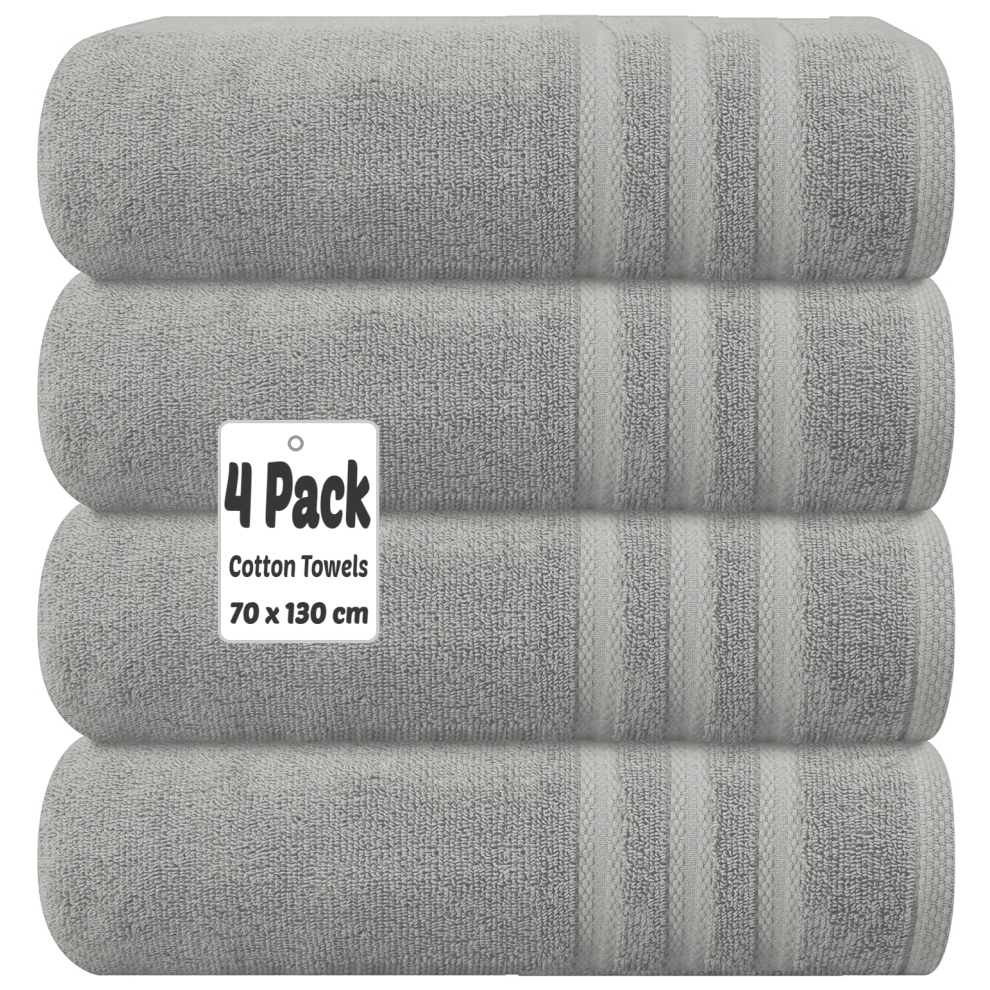 X11 Homeware Bath Towels Pack of 4 Egyptian Cotton Towel Set Highly Absorbent Soft Bathroom Towels Set of 4 Ring Spun Cotton Quick Dry Large Towels (Grey)