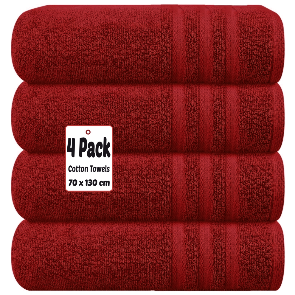 (Red) 4 X Luxury Bath Towels 100% Egyptian Cotton Large Size Big Bathroom Towels Set