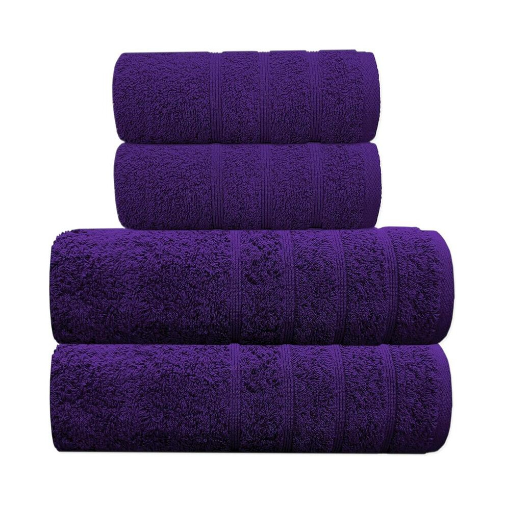 (PURPLE) Luxury Cotton Towels Set, 2x Bath and 2x Hand Towels - Hotel Quality Super Soft Highly Absorbent Towels Bale set Bathroom Towels Soft