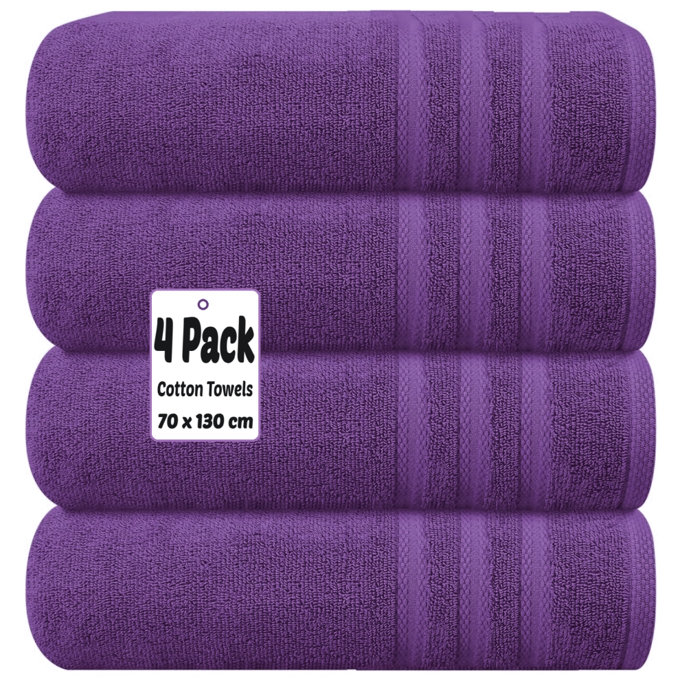 (Purple) 4 X Luxury Bath Towels 100% Egyptian Cotton Large Size Big Bathroom Towels Set