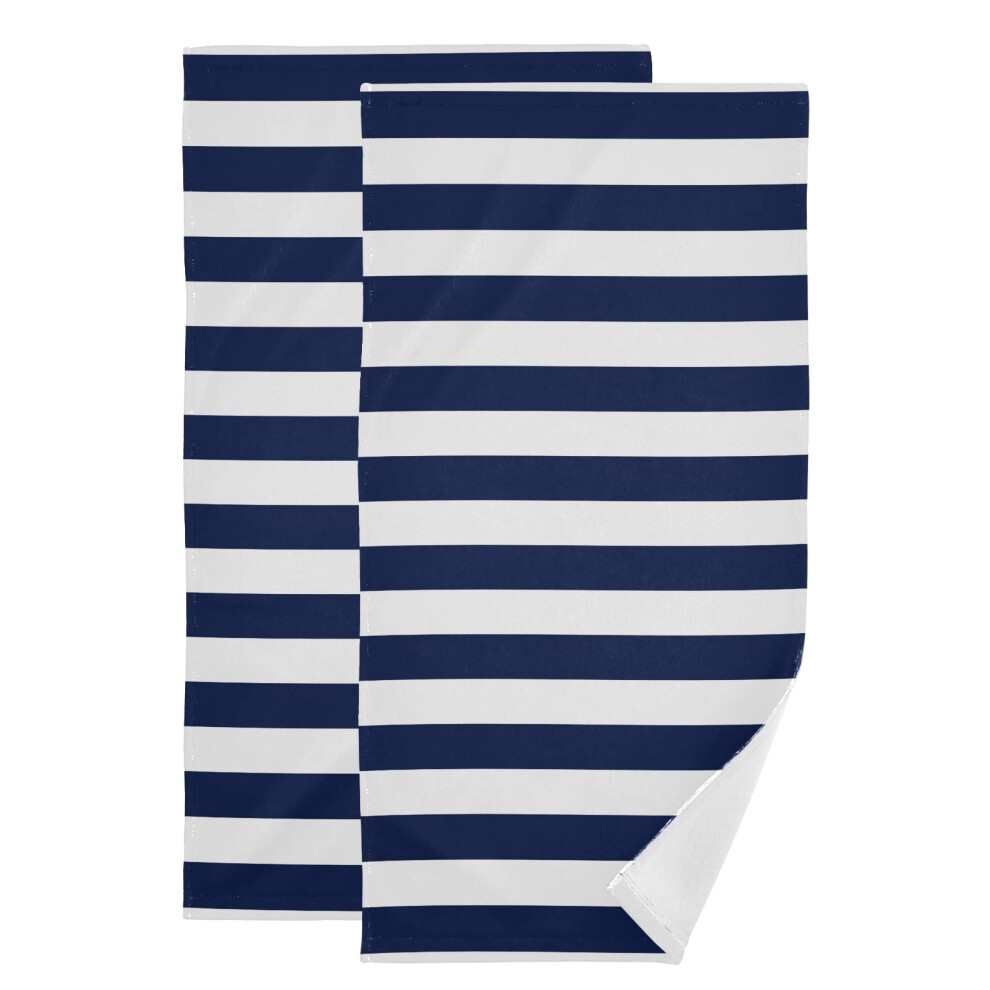 Bathroom Hand Towels Set of 2 Navy Blue and White Stripes 14 x 28 Inches Soft Quality Decorative Bathroom Towel for Hand, Face, Hair, Tea, Dishcloth,