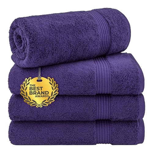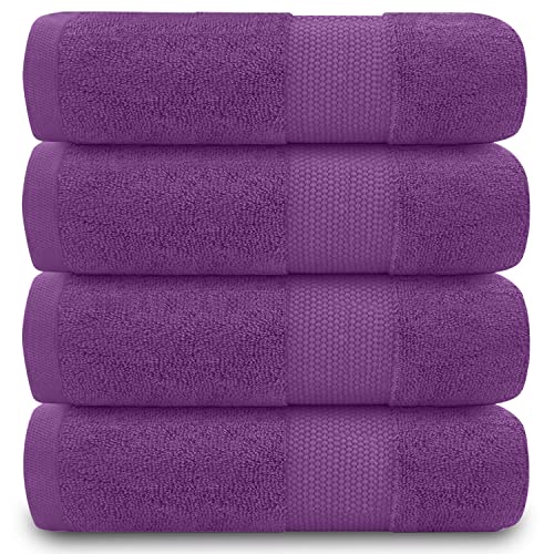 Cotton Paradise Bath Towels for Bathroom, 100% Cotton 4 Piece Turkish Bath Towel Set, Soft Plush Towels Clearance Bathroom Set, Purple Bath Towels