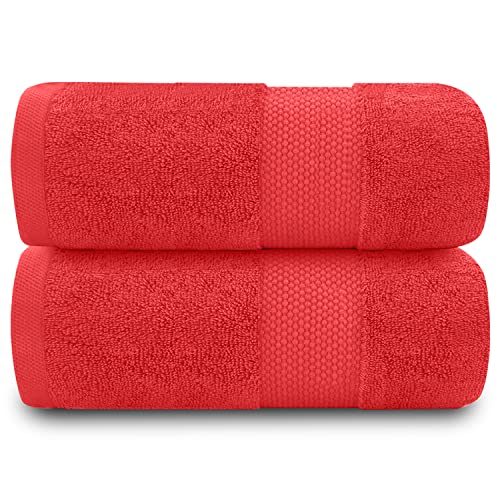 Fade Resistant Bathroom Towels Set, 700 GSM Premium Quality Extra Absorbent 100% Cotton Bath Towel, Wine, 2PK Bath Towel