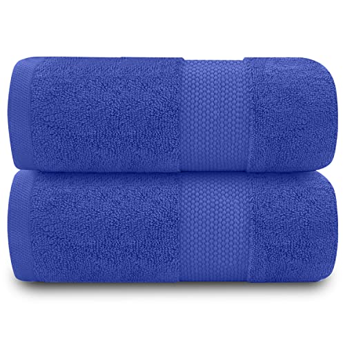Fade Resistant Bathroom Towels Set, 700 GSM Premium Quality Extra Absorbent 100% Cotton Bath Towel, Royal Blue, 2PK Bath Sheet