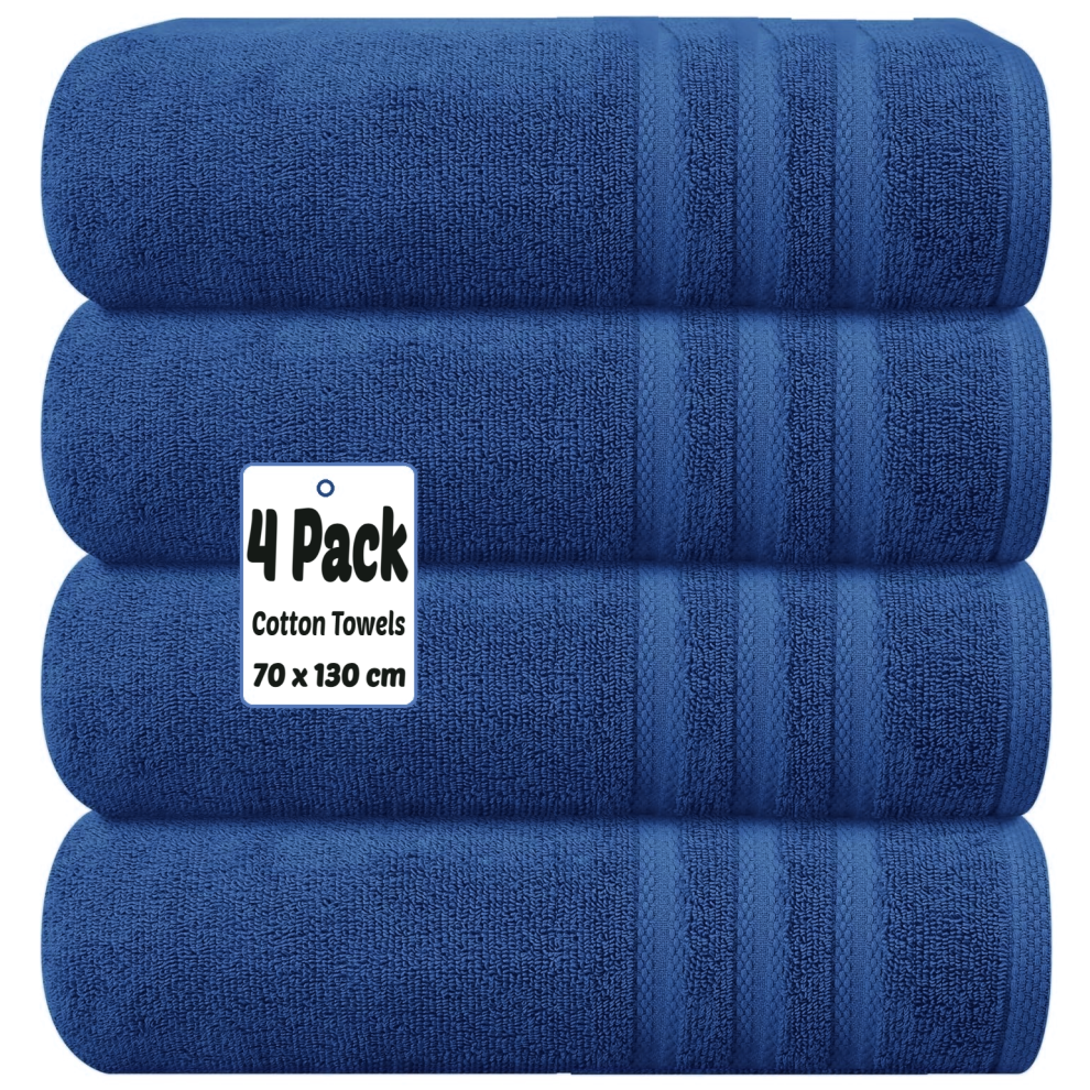 (Blue) 4 X Luxury Bath Towels 100% Egyptian Cotton Large Size Big Bathroom Towels Set