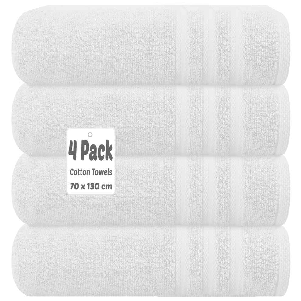 (White) 4 X Luxury Bath Towels 100% Egyptian Cotton Large Size Big Bathroom Towels Set