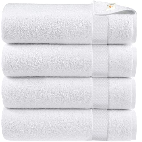 X11 Homeware Bath Towels Pack of 4 Egyptian Cotton Towel Set Highly Absorbent Soft Bathroom Towels Set of 4 Ring Spun Cotton Quick Dry Large Towels (White)
