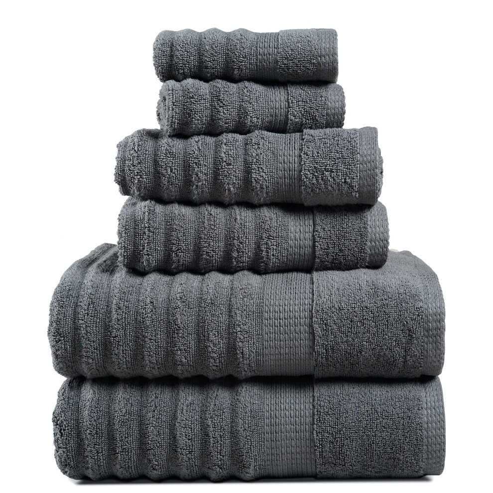 LANE LINEN Ribbed Space Grey Bath Towels Set for Bathroom Set- 100% Cotton Luxury Bathroom Towels Set Quick Dry 2 Bath Towels 2 Hand Towels 2