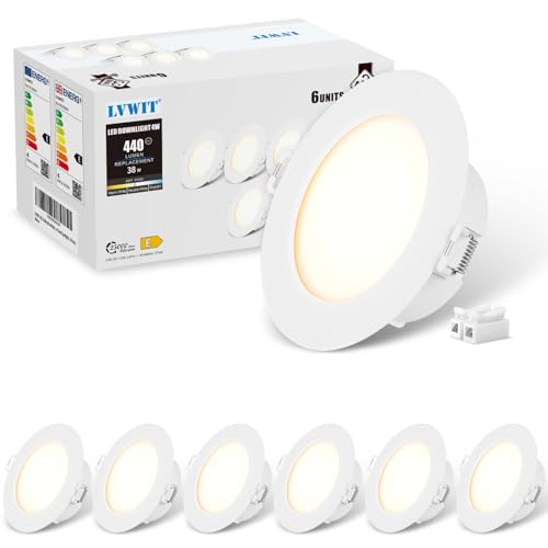 LVWIT Kitchen Spot Lights Ceiling,4W Ultra Slim LED Recessed Ceiling Lights,6500K Cool White LED Downlights for Ceiling,Spotlights Ceiling Lights for Bathroom Living Room,Non-Dimmable,440LM,6 Pack