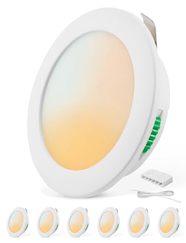 Mizlay 6PCS Led Recessed Ceiling Downlights 7W Dimmable 3CCT 88mm(Cut 70-75mm), IP44 Bathroom Spot Lights, LED Ceiling Spotlights Warm Natural Cool White Adjustable, AC220-240V Round White
