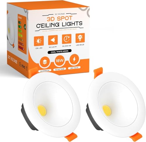 DC VOLTAGE 2 Pack LED Downlights for Ceiling Warm White 3000K, 18W,90LM/ W, AC 220-240V, Cut Ø90-100 mm Ultra Slim Recessed Ceiling Round 3D Spot Lights for Bathroom Kitchen Living Room