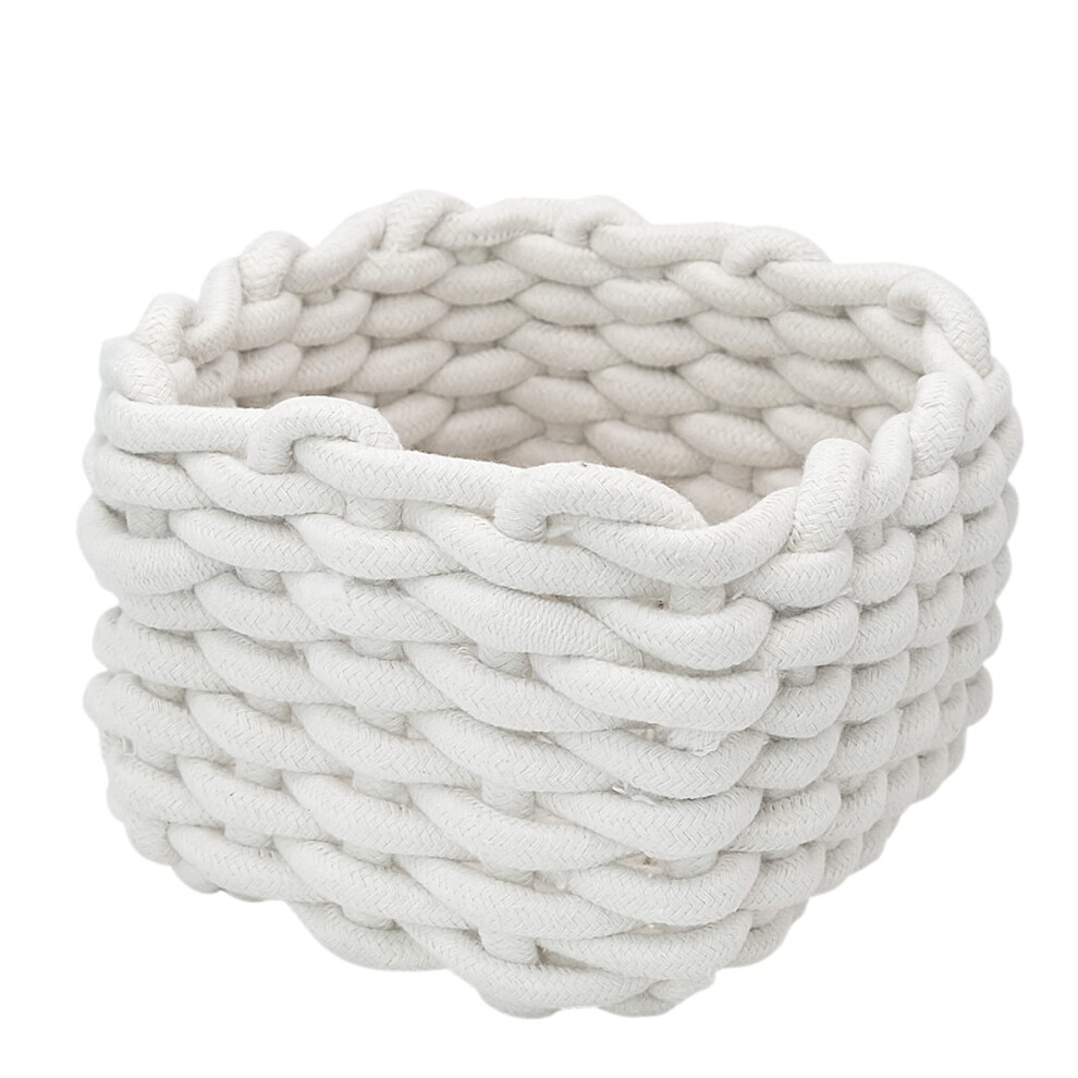 JJQHYC Cotton Rope Basket Woven Storage Baskets White Rope Desktop Basket Organizer Bathroom Storage Baskets for Cupboard Nursery Decor