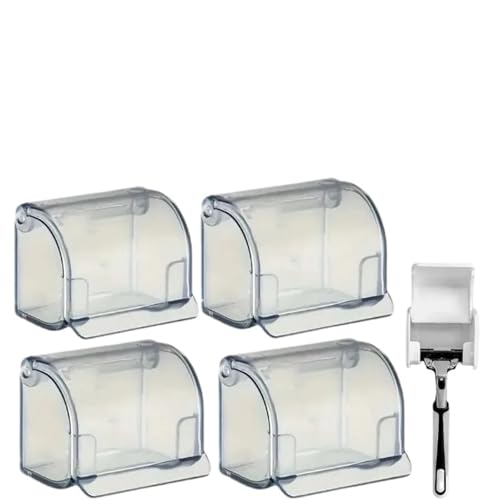 NOVACYTHER Punch Free Hooks for Bathroom Razor Holder Storage Boxes Wall Shaving Shaver Shelf Toothbrush Holders(Grey-4pcs)