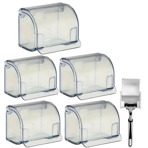 NOVACYTHER Punch Free Hooks for Bathroom Razor Holder Storage Boxes Wall Shaving Shaver Shelf Toothbrush Holders(Grey-5pcs)