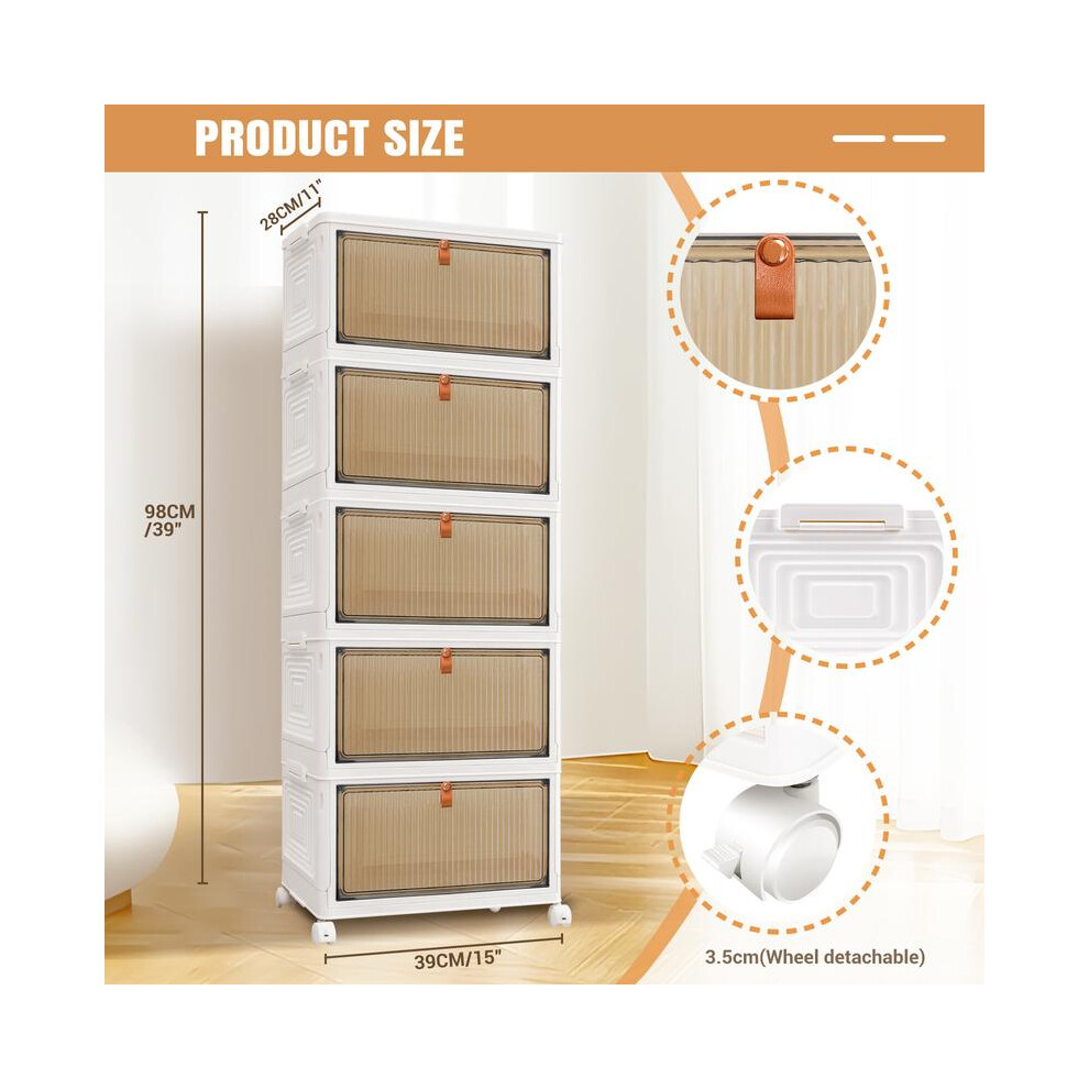 (5-Tier-39 x 28 x 98cm) 3/4/5-Tier Storage Boxes with Lid - Bathroom Storage, Plastic Storage Boxes Stackable Storage Boxes with 4 Universal Wheels, C