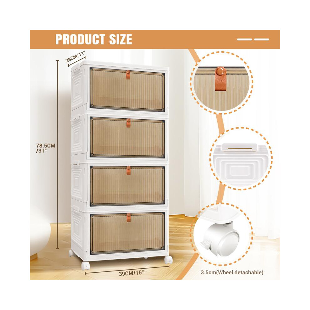 (4-Tier-39 x28 x 78.5cm) 3/4/5-Tier Storage Boxes with Lid - Bathroom Storage, Plastic Storage Boxes Stackable Storage Boxes with 4 Universal Wheels,