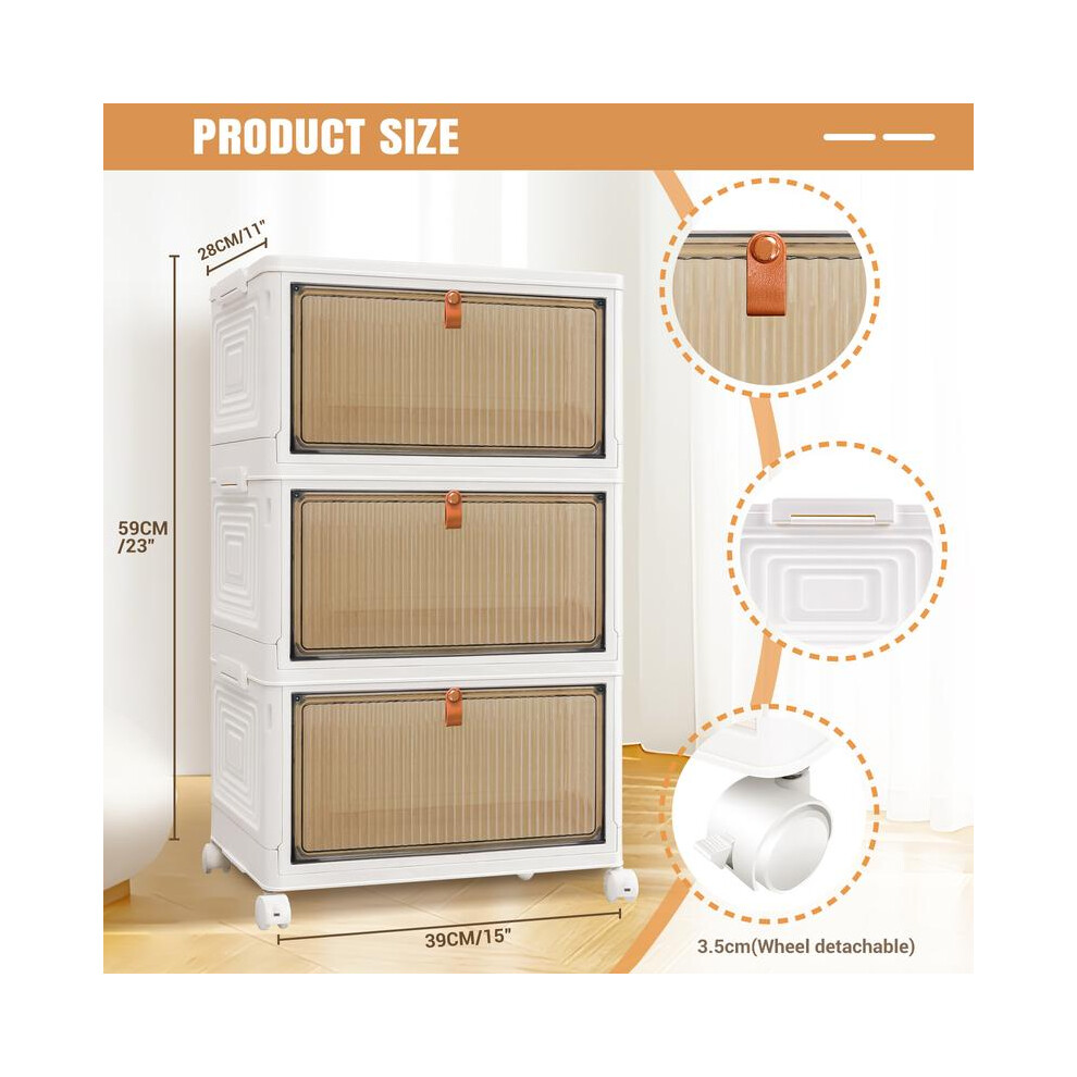 (3-Tier-39 x 28 x 59cm) 3/4/5-Tier Storage Boxes with Lid - Bathroom Storage, Plastic Storage Boxes Stackable Storage Boxes with 4 Universal Wheels, C