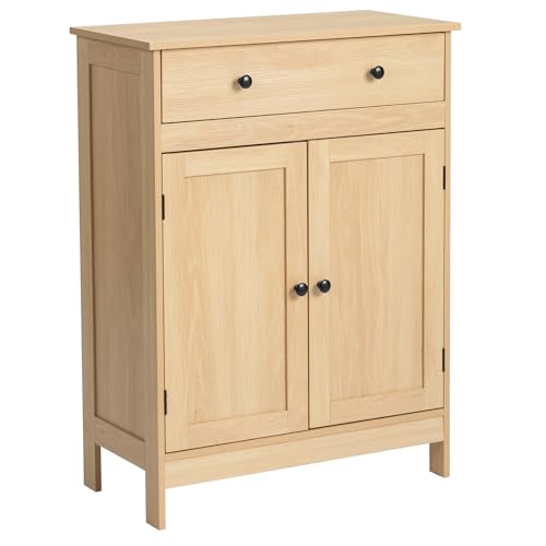 Bonnlo Bathroom Floor Storage Cabinets Free Standing, Unit & Cupboard with 1 Drawer, Adjustable Shelf, 30x60x80 cm, Wooden Cabinet for Living Room Kitchen Hallway, Natural Oak