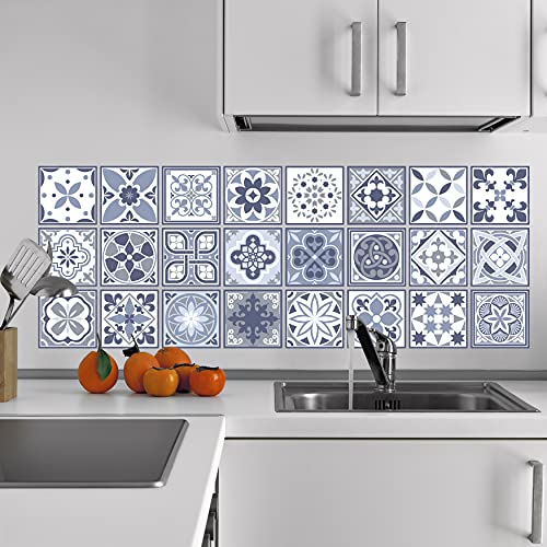 WALPLUS Lisbon Blue Mosaic Wall Tile Stickers - 10cm x 24 Pieces, DIY Peel and Stick Vinyl Decals for Home Decor, Self-Adhesive Backsplash, Kitchen & Bathroom Splashback, Spring/Easter Design