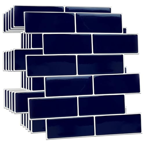 WALPLUS 3D Tile Stickers Peel and Stick Backsplash Splashback Decals Tile Transfer for Kitchen Bathroom Living Room Stick on Tile Waterproof Deep Blue 30 Sheets 30.5cm(12")