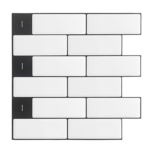 WALPLUS 3D Tile Stickers Peel and Stick Backsplash Splashback Decals Tile Transfer for Kitchen Bathroom Living Room Stick on Tile Waterproof London Minimalist Brilliant White 12 Sheets 30.5cm(12")
