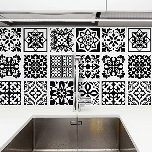 48 Black Tile Stickers Victorian Moroccan Mosaic Style Tile Stickers Transfers Cover for 6x6 15 x 15cm Tile Kitchen Bathroom Stick On Wall Peel and Stick Tile Decals