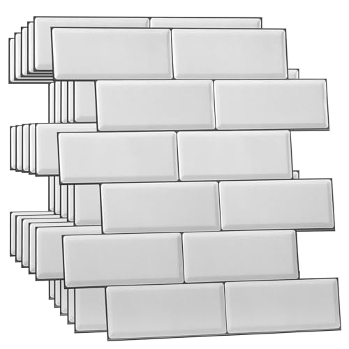 WALPLUS 3D Tile Stickers Peel and Stick Backsplash Splashback Decals Tile Transfer for Kitchen Bathroom Living Room Stick on Tile London Metro Classic Brick Brilliant White 24 Sheets 30.5cm(12")
