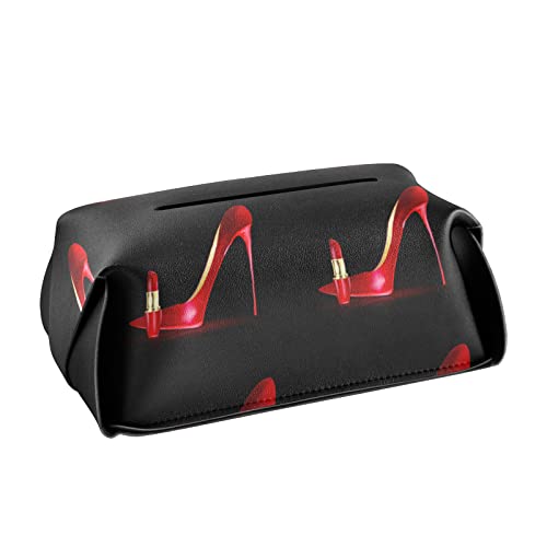 Oyihfvs Red Shoe High Heel Lipstick Seamless Rectangle Leather Tissue Box Cover with Handle for Bathroom Home Tissue Box Holder Vanity Office Desk Car 9.4x5.1x3.6 in