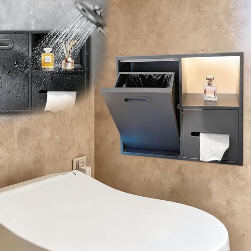 Vibeo In Wall Bathroom Tissue Holder with Shelf, Recessed Toilet Paper Holder, Built-in Trash Can Alcove, Toilet Paper Niche Insert for Kitchen, Bedroom(Gray)