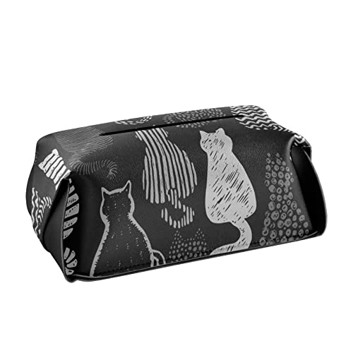 Hand Draw Textured Cats Square Leather Tissue Box Cover with Handle for Bathroom Home Tissue Box Holder Vanity Office Desk Car 5.7x5.7x5.7 in