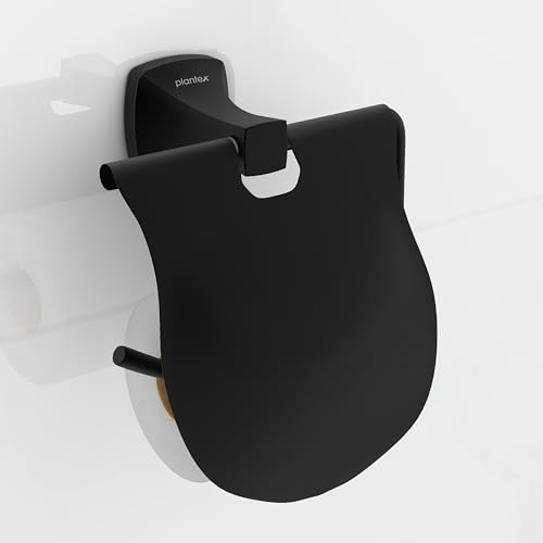 Plantex Space Aluminum Toilet Paper Roll Holder/Toilet Paper Holder for Bathroom/Kitchen Tissue Holder/Bathroom Accessories (Black)